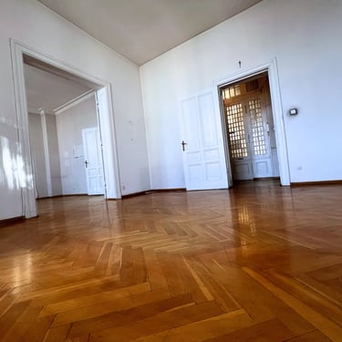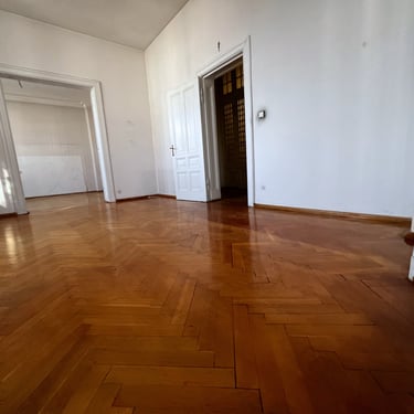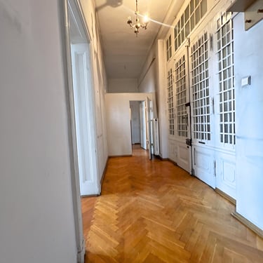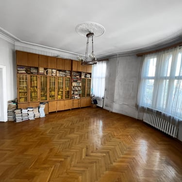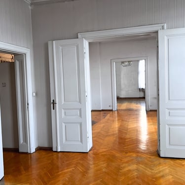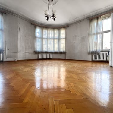 Na trzecim piętrze zabytkowej kamienicy znajduje się mieszkanie o powierzchni ok. 130 metrów kwadratowych składające się z 3 dużych pomieszczeń, przestronnej kuchni, łazienki, dużego przedpokoju oraz dwóch pomieszczeń: garderoby przyległej do przedpokoju oraz niespotykanej już w dzisiejszych czasach spiżarni, która znajduje się za kuchnią.